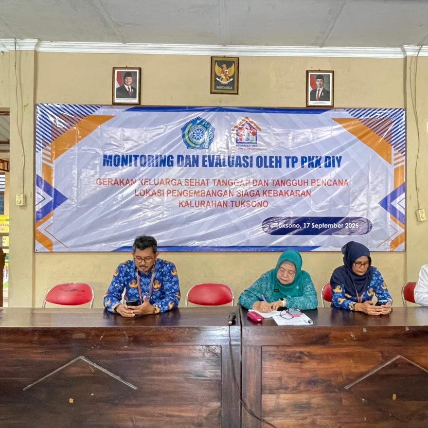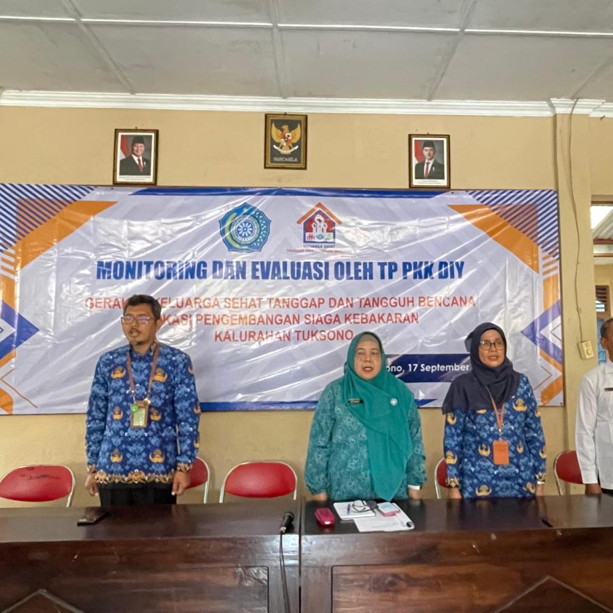 Tuksono, Sentolo — Balai Kalurahan Tuksono, Kapanewon Sentolo, Rabu pagi (17/9/2025), dihadiri tim monitoring dan evaluasi Gerakan Keluarga Sehat Tanggap dan Tangguh Bencana (GKSTTB) dari Tim Penggerak PKK DIY. Dalam suasana penuh kekhidmatan acara tersebut dilaksanakan berdasarkan surat edaran dari TP-PKK Kabupaten Kulon Progo bahwa TP-PKK Kalurahan Tuksono ditunjuk sebagai Lokasi Pengembangan GKSTTB bidang Siaga Kebakaran Lingkungan. Acara ini dihadiri Tim Monev TP-PKK DIY, TP-PKK Kabupaten Kulon Progo, Dinas Kesehatan, BPBD Kulon Progo, Panewu Sentolo, Puskesmas Sentolo II, PKK Kapanewon Sentolo, Lurah Tuksono, ketua RTS, ketua KSB, dan seluruh anggota TP-PKK Kalurahan Tuksono.